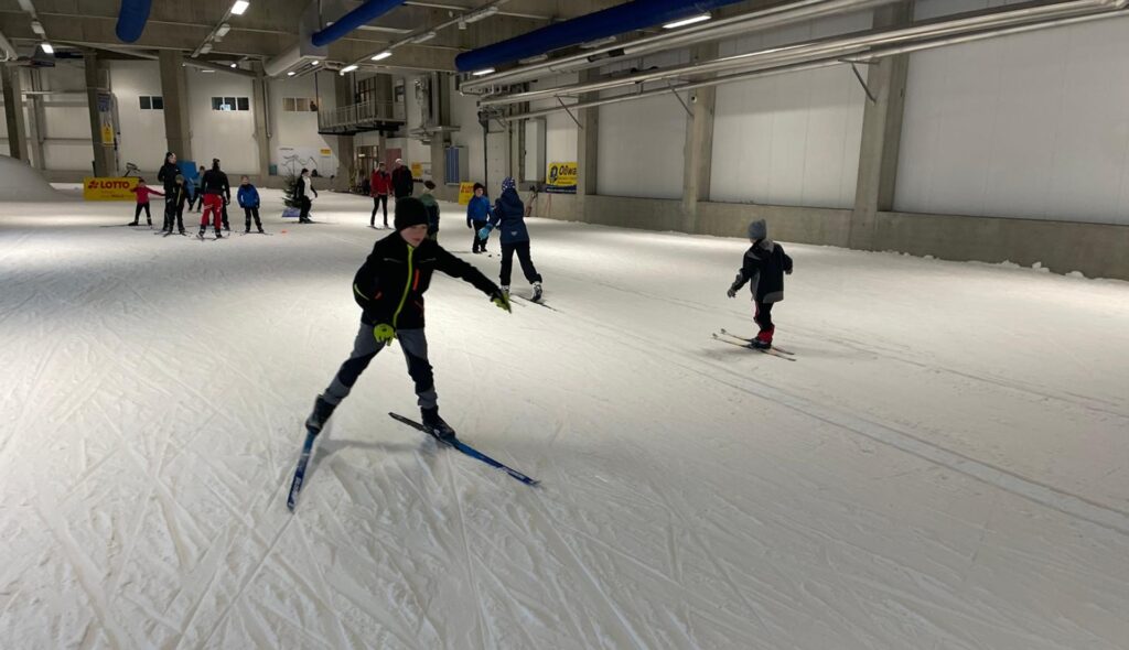 Nach dem Frühstück ging es erneut in die Skihalle zur nächsten Trainingseinheit. Für einige Kinder stand das Erlernen einer neuen Technik auf dem Plan. Sie standen erstmals auf Skating-Ski.